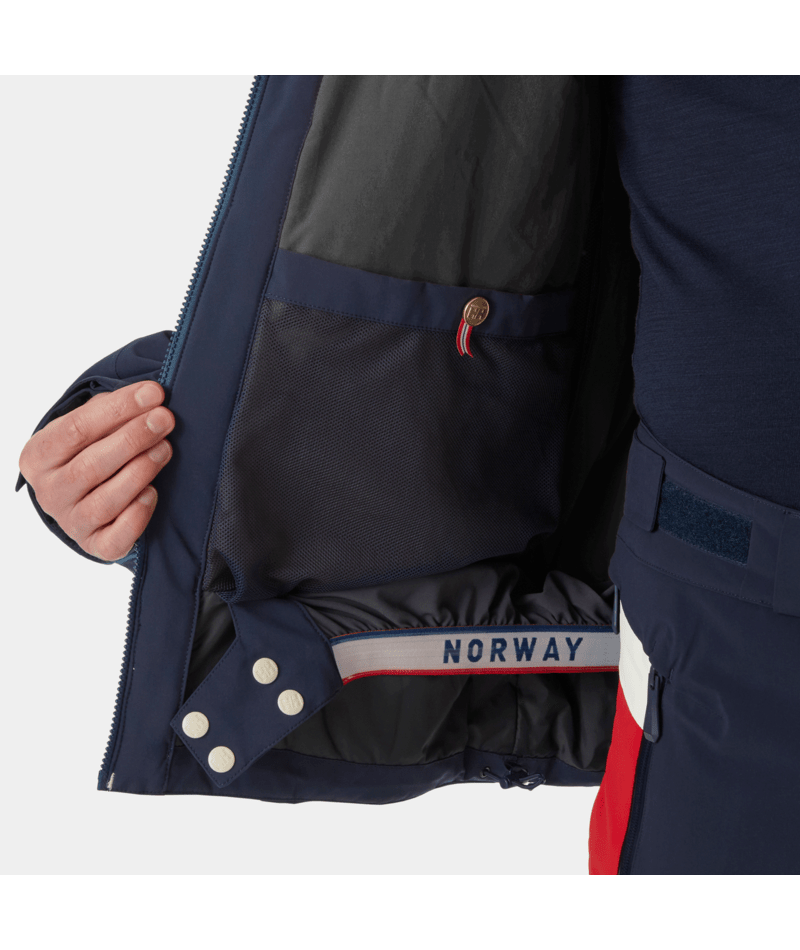 Ko se vremenske razmere na smučišču spremenijo, vas Helly Hansen Kvitfjell Race INS jakna ohranja tople in suhe zahvaljujoč HH zračni in vodoodporni tehnologiji HELLY TECH® Professional. Ta jakna je bila razvita skupaj z norveško alpsko smučarsko reprezentanco Team Telenor Alpine Norway. Rokavi so posebej oblikovali z mislijo na smučarje: ponujajo dovolj prostora za ščitnike za roke in rokavice, tako da lahko jakno brez problema oblečete in slečete, ko imate na sebi rokavice. Zahvaljujoč 4-smerni raztegljivi tkanini in ergonomsko oblikovanim rokavom lahko v tej jakni uživate v popolnem razponu gibanja. Druge priročne lastnosti vključujejo nastavljiv Powder skirt (zaščita pred vdorom snega), nastavljivo kapuco z neon robom in več žepov, vključno s tistimi za telefon in smučarsko karto.