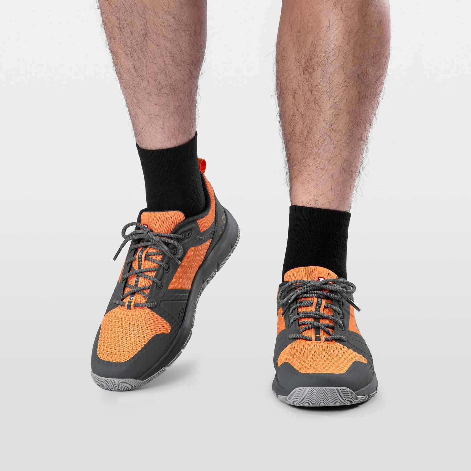 Zgornji del je izdelan iz open-mesh konstrukcije (breathable mesh upper), ki omogoča hitro sušenje in odlično zračnost, hkrati pa brezšivni ojačitveni elementi ščitijo stopalo pred udarci in obrabo.