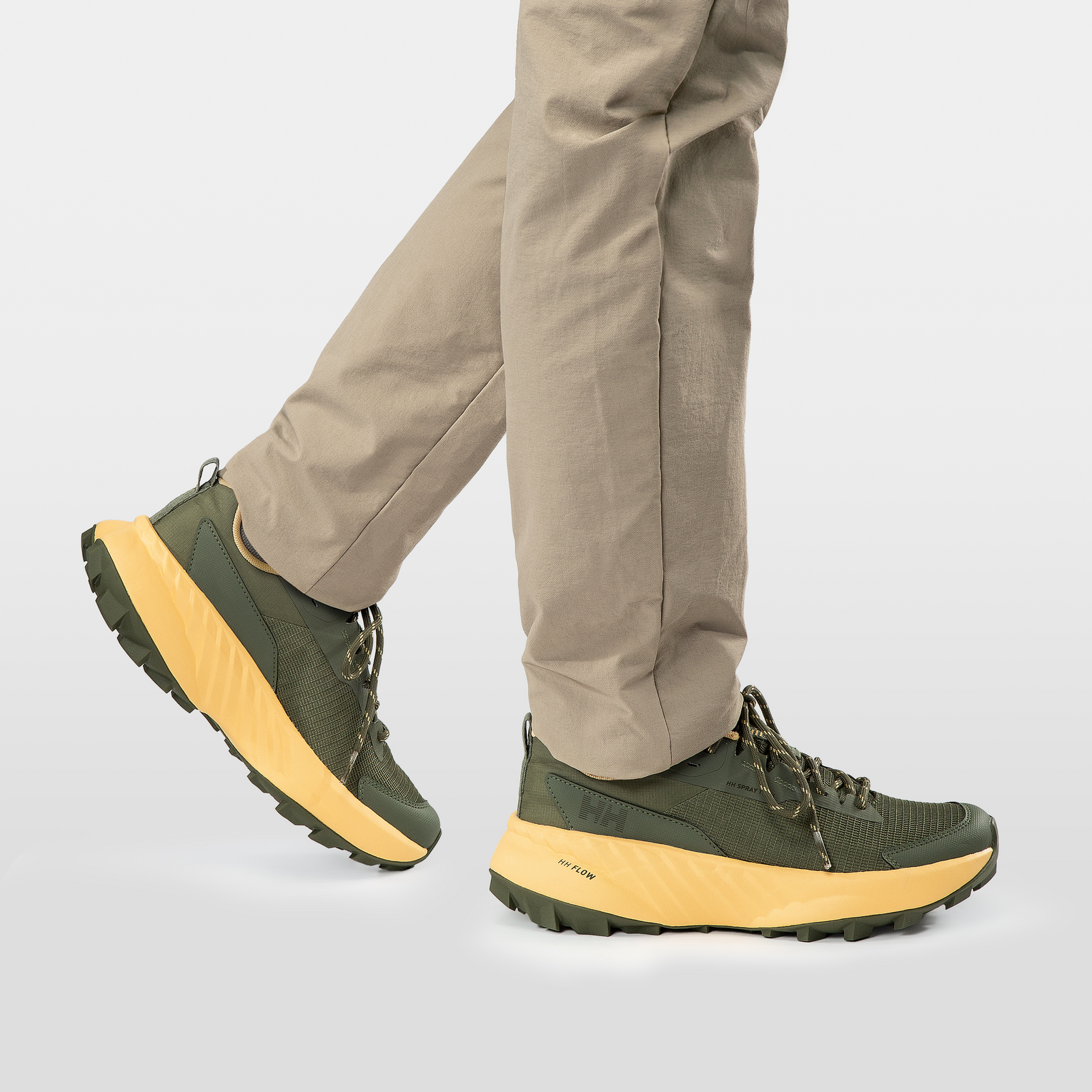 Podplat HH Trail Grip zagotavlja stabilen in zanesljiv oprijem na raznolikih površinah, medtem ko vmesni podplat s peno HH Flow nudi udobno blaženje in podporo pri celodnevni uporabi.