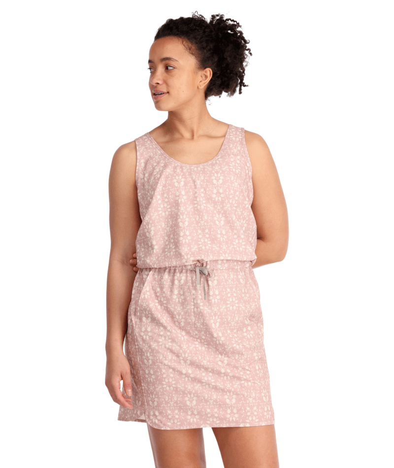 Kari Traa RUTH TANKDRESS je športno-elegantna obleka. Namesto majice brez rokavov in kratkih hlač, ta ohlapno prilegajoč kos ponuja svež in zabaven videz. Narejna je iz reciklirane, hitro sušeče tkanine s 4-smerno razteglivostjo, ki je izjemno mehka in se giblje z vami.