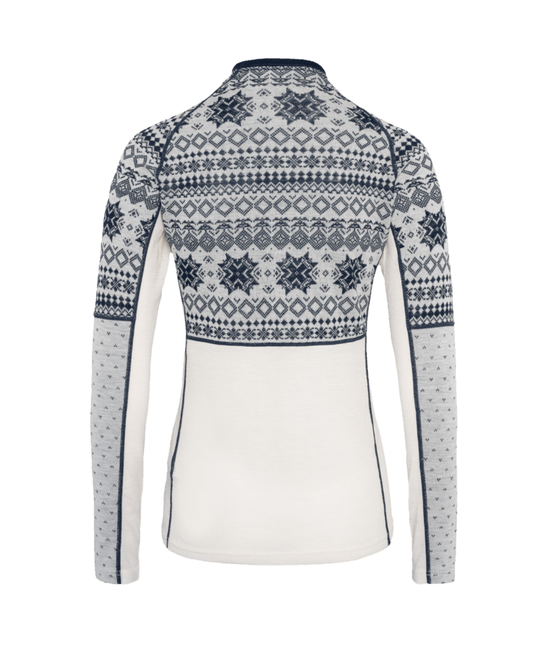 Kari Traa Vilma LS je ženska baselayer majica iz 100% merino volne, ki vas ohranja tople, tudi ko je mokra. Gladka in mehka majica s svojim Jacquard vzorcem spominja na sneženje, medtem ko raztegljivi vložki pod pazduhami omogočajo neovirano gibanje. Z oprijetim krojem in raglan rokavi je Vilma majica odlična izbira za hladne zimske dni.