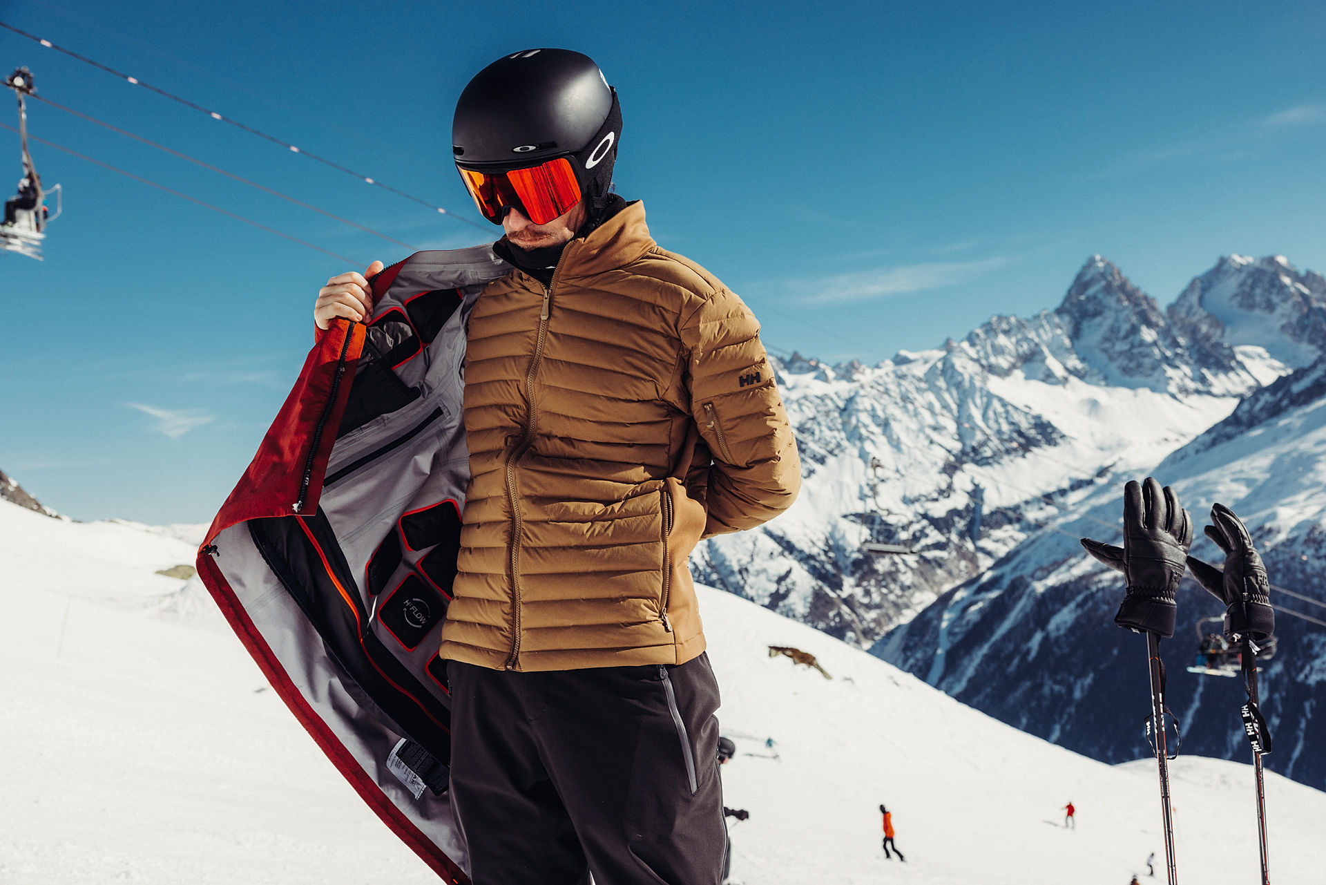 Helly Hansen prav tako uporablja napihnjeno poliestrsko izolacijo ter reciklirano poliestrsko polnilo, ki prispevata k trajnostni uporabi materialov.
